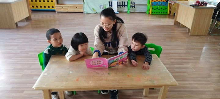 研究生与孩子们一起共读故事,共习名字,共玩游戏。孩子们在活动过程中感受汉字文化的魅力,学习普通话的发音,学习握笔姿势。研究生向园内老师学习怎样把控活动节奏以及调动幼儿兴趣,在讲述绘本的过程中,学会了有效提问,同时积累更多与幼儿互动的经验。