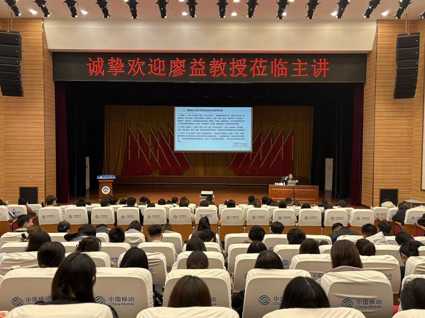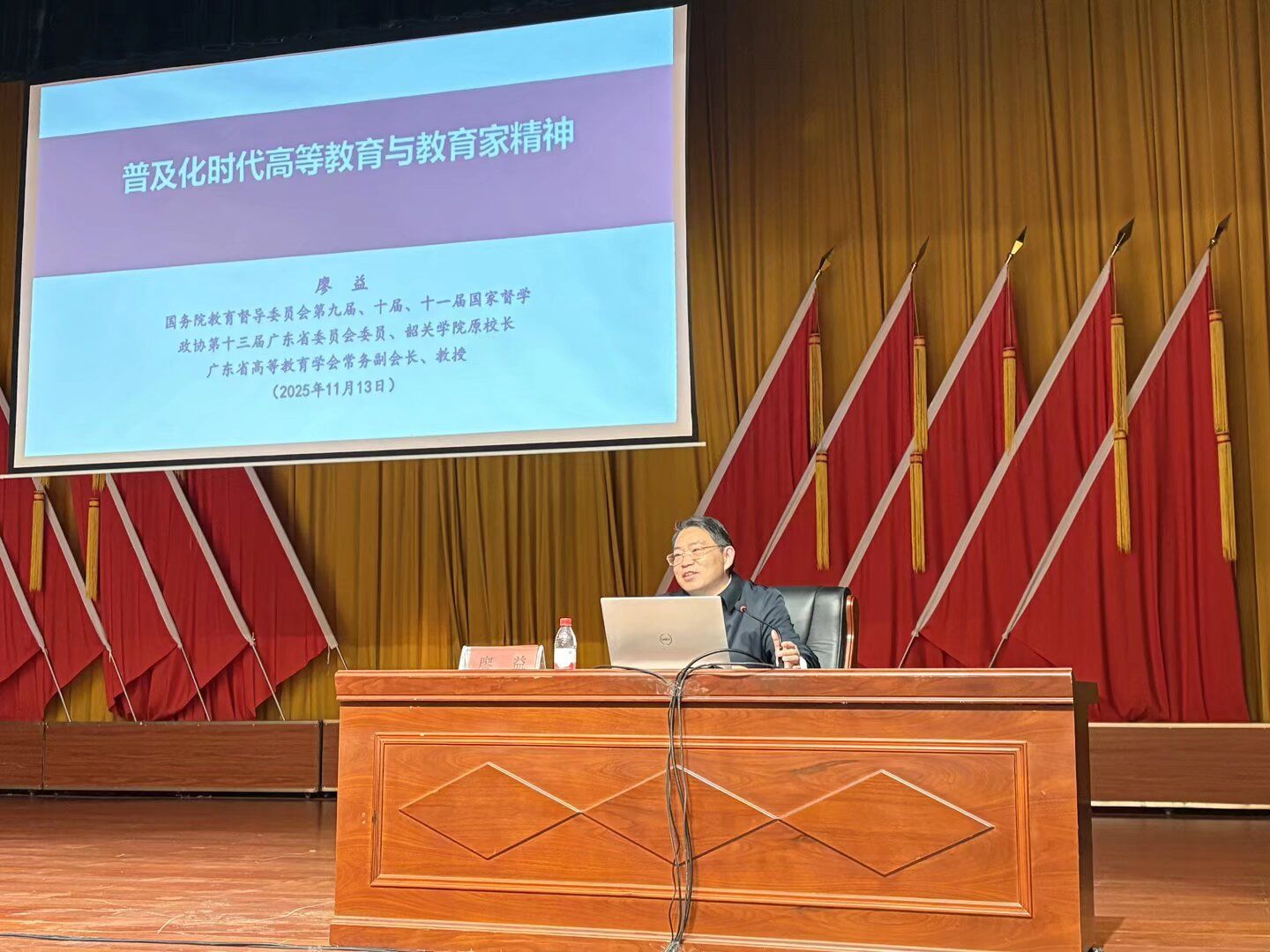 2025年11月13日,国务院教育督导委员会第九届、十届、十一届国家督学、韶关学院原校长廖益教授做客教育科学学院“学术月”活动,在我校大学生活动中心报告厅作《普及化时代高等教育与教育家精神》专题讲座。喀什大学党委常委、校长助理罗丽华主持活动,教育科学学院和马克思主义学院师生代表参加活动。