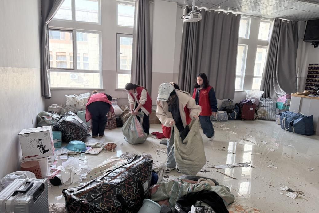 活动中,志愿者们齐聚文科楼实习生行李存放教室,对室内堆放的行李、杂物及卫生死角进行全面细致清理,认真擦拭台面、分类收纳杂物、规范物品摆放,不放过任何细节死角。经过协同努力,原本杂乱的教室焕然一新,整体环境整洁有序、宽敞明亮,切实为实习生打造了干净整洁、规范易用的物品存放空间,为学院后续教学开展、实践活动推进及校园环境优化奠定了坚实基础。