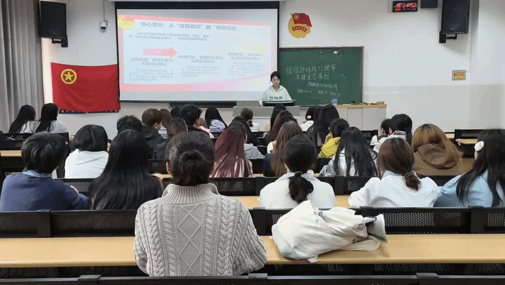团课上,院团委副书记温孟鑫老师与各班团支书共同组织学习,同时,班主任老师积极协助,引导新时代青年在生态文明建设中践行初心、勇担使命。同学们在温孟鑫老师和团支书的带领下学习了我国生态建设发展历程,回顾了植树造林、三北防护林、新时代生态文明建设等重大实践与成就;通过塞罕坝、安吉余村等典型案例,感受我国生态治理成果;深入领会“人与自然和谐共生”及绿色发展、“双碳”等国家战略内涵,明确青年使命。团课尾声,温孟鑫老师号召同学们将爱国情怀转化为实际行动,从节约资源、参与植绿护绿等小事做起,在日常学习生活中践行生态责任,助力美丽中国建设。