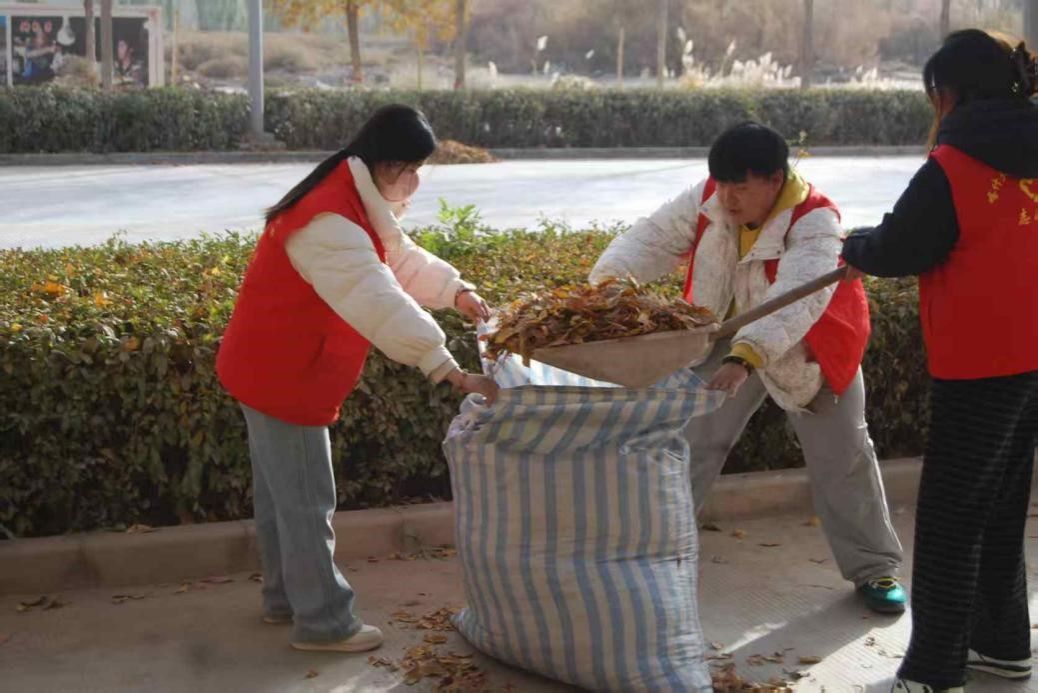在环卫工人的现场指导下,志愿者们认真学习、仔细操作,逐渐掌握了清扫的要领。随后,志愿者们分成小组,与现场的环卫工人默契配合。有人用扫帚将落叶归拢成堆,有人手持铲子将落叶装入垃圾袋,还有人负责将装满的袋子集中堆放。除了清扫落叶,同学们还将散落在路边和绿化带中的塑料瓶、纸屑等杂物一一捡起,不放过任何一个卫生死角。