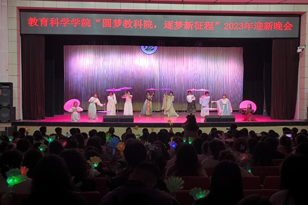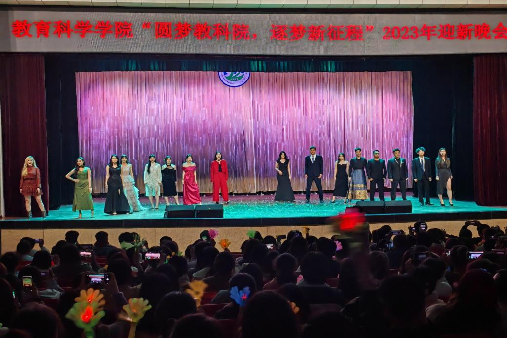 随着主持人对大一新生们的祝词,教育科学学院的迎新晚会到此圆满结束。此次迎新晚会不仅是视听盛宴,更是梦的旅程。今夜,青春将在这里起航,今夜,梦想将在这里飞翔。祝愿2023级新生们的人生定会如同晚会般多姿多彩,在十八岁最好的年华中,迸发出不一样的烟火!