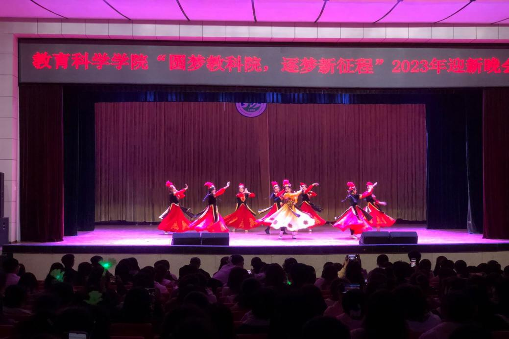 流光溢彩迎新夜,心心连新齐飞扬。为认真贯彻落实学校二届二次全委(扩大)会议精神,根据喀什大学《关于进一步加强和改进思想政治教育铸牢中华民族共同体意识的指导意见》及配套文件要求,贯彻落实学校“五个人人”工作安排,进一步引导广大青年铸牢中华民族共同体意识,丰富校园文化活动,展现我校学生朝气蓬勃、积极向上的精神风貌,11月3日晚21:00,教育科学学院迎新晚会在高台校区科学会堂举办。