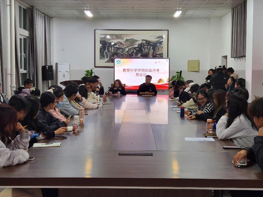 为了让各班班委尽快熟悉学院规章制度,增强各班级凝聚力,强化班委的责任意识,保证各班级工作的高效有序进行,促进我院日后工作的顺利开展。教育科学学院于2023年10月30日在文科楼会议室开展了教育科学学院班级月考核会议。参加此次会议的有学工办副主任史孔鹏、辅导员古丽给娜·热依木和各班班长、团支书等。