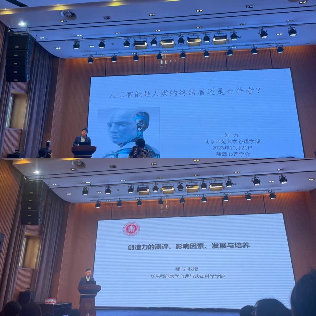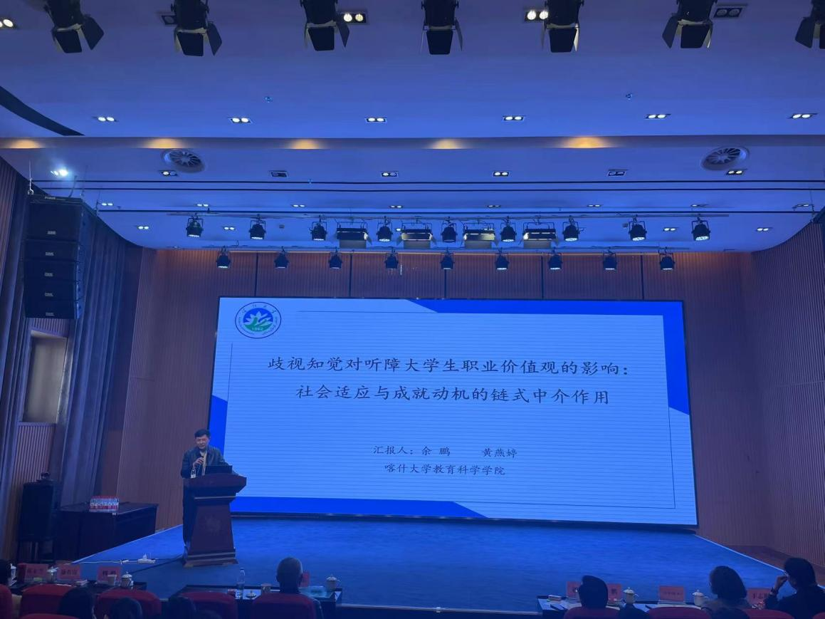 大会开幕式上,由新疆心理学会理事长、新疆师范大学心理学院院长买合甫来提·坎吉教授主持,北京师范大学刘力教授做了《人工智能是人类的终结者还是合作者?》的特邀报告;华东师范大学郝宁教授作了《创造力的测评、影响因素、发展与培养》的特邀报告。在主题报告中,作为新疆心理学会副理事长,余鹏教授代表喀什大学做了题目为《歧视知觉对听障大学生职业价值观的影响:社会适应与成就动机的链式中介作用》的主题报告,在报告中,余书记不仅分享了此篇论文的选题来源以及研究思路,并以论文为主线,阐述了自己的思考和发文建议。