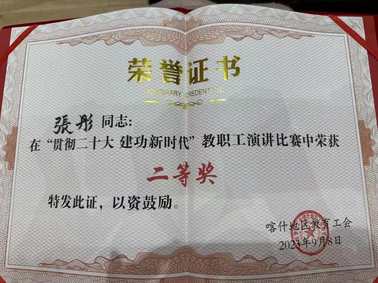 张彤老师以学前教师独有的气质,语调激昂、感情丰富、为人师表、雅洁如玉、彷如空谷中之幽兰、月色下之洞箫,吸引和震撼了在场的评委和观众,并最终以出色的演讲斩获“喀什地区第39届教师节演讲比赛”的第二名的佳绩!