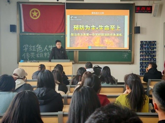 活动前期,辅导员利用24级学生早晚自习及团课时间,带领大家深入讲解应急演练理论知识。通过精心制作的PPT,详细介绍火灾、地震等紧急情况下的应对方法,包括如何正确疏散、寻找安全区域以及使用应急设备等。同时,结合真实案例分析,让学生们深刻认识到应急知识的重要性,为后续的实战演练筑牢理论根基。