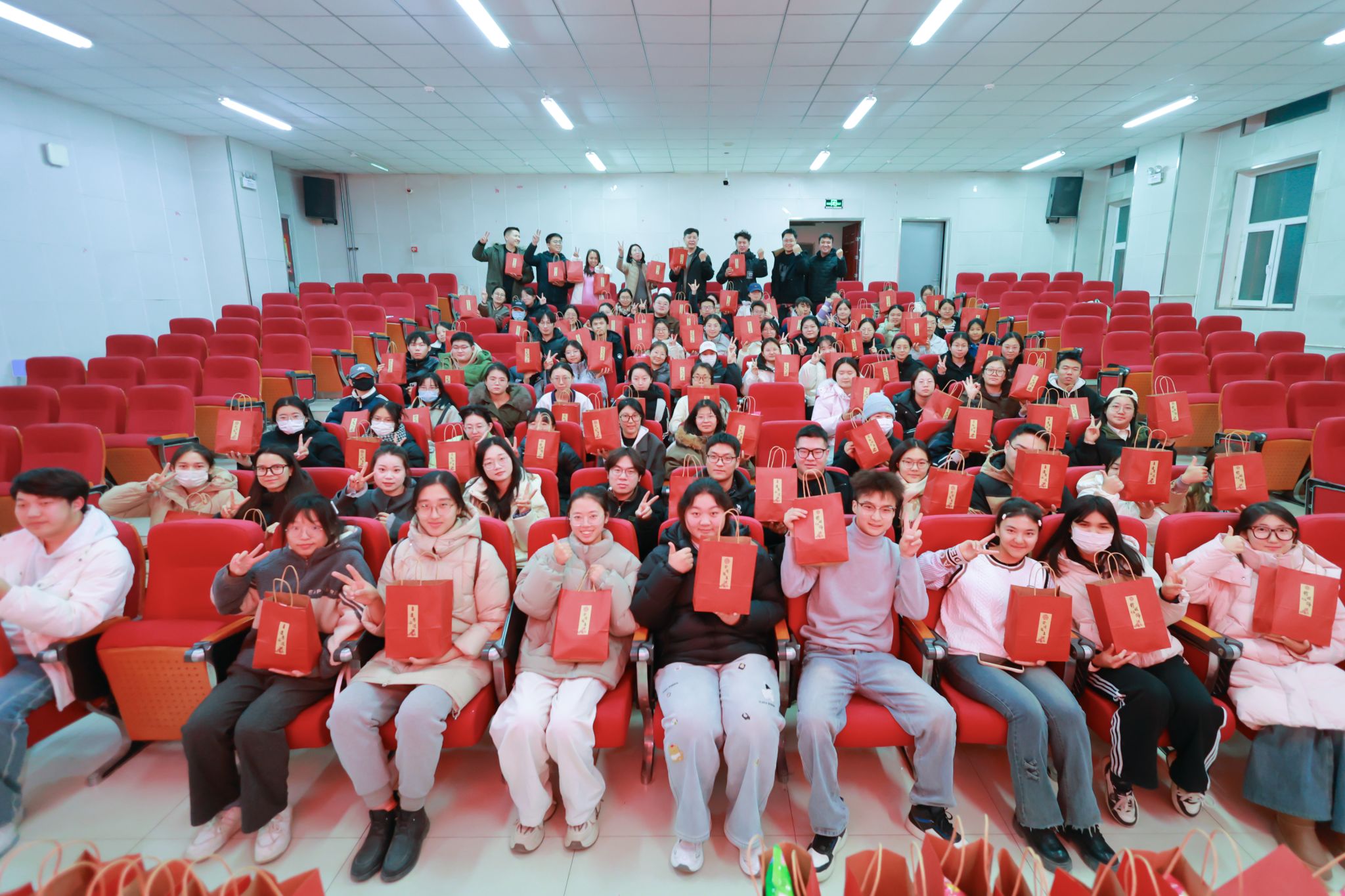 余鹏、赵宝带领学院各位老师为大家献上祝福。老师们亲手将“上岸礼包”送到每位学子手中,传递学院殷切期许,有代表着心想事成的橙子;有象征着牛气冲天”的牛奶;有寓意着“乐事发生”的薯片;有表达“温暖前行”的暖贴。在收到这份特别的礼物后,同学们深受鼓舞与感动,纷纷表态定将铭记学院的深切期望和老师的悉心教导,以更加昂扬的斗志投入最后的备考冲刺,力求以出色的成绩为学院增添荣誉,为人生画卷添上绚丽的一笔。