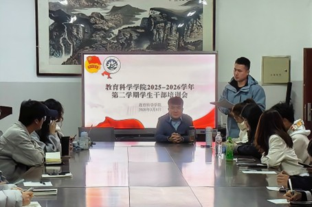 为强化学生干部的责任意识、服务意识与协作意识,凝聚工作合力,教育科学学院于2026年3月2日、8日分别在高台校区新文科楼116教室、新泉校区文科楼B206召开全体学生干部例会,院团委书记帕鲁克·甫拉提、副书记温孟鑫、辅导员孙海兰及全体学生干部参加会议。