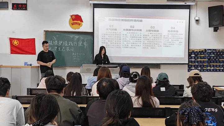团课上,院团委副书记温孟鑫老师与各班团支书共同组织学习,同时,班主任老师积极协助,引导新时代青年在生态文明建设中践行初心、勇担使命。同学们在温孟鑫老师和团支书的带领下学习了我国生态建设发展历程,回顾了植树造林、三北防护林、新时代生态文明建设等重大实践与成就;通过塞罕坝、安吉余村等典型案例,感受我国生态治理成果;深入领会“人与自然和谐共生”及绿色发展、“双碳”等国家战略内涵,明确青年使命。团课尾声,温孟鑫老师号召同学们将爱国情怀转化为实际行动,从节约资源、参与植绿护绿等小事做起,在日常学习生活中践行生态责任,助力美丽中国建设。