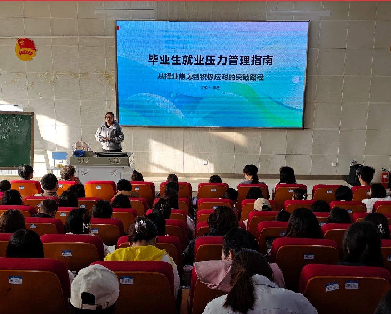 2025年10月29日,教育科学学院在文科楼002报告厅举办2025-2026学年第一学期就业育人指导系列讲座第三期活动——就业心理调适专题,本次活动由李慧老师主讲,旨在精准回应2026届毕业生在求职阶段的心理需求,帮助其缓解就业焦虑、建立积极求职心态。教育科学学院就业专干海丽其姑丽·麦克克主持活动,教育科学学院的100余名同学参与本次讲座。