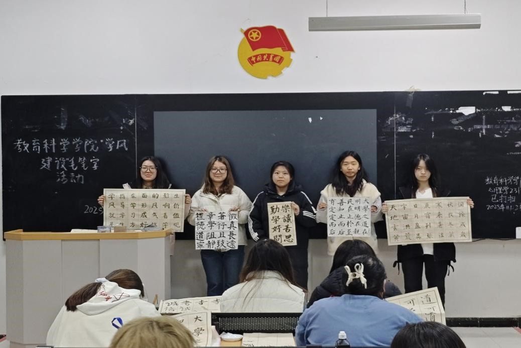 为加强铸牢中华民族共同体意识教育,落实学校“五个人人”工作要求,增强集体意识、陶冶家国情怀,2025年11月,教育科学学院围绕“专题部署+分类训练+集中展示”三维度多元化实践推动工作要求落地生根,见行见效。